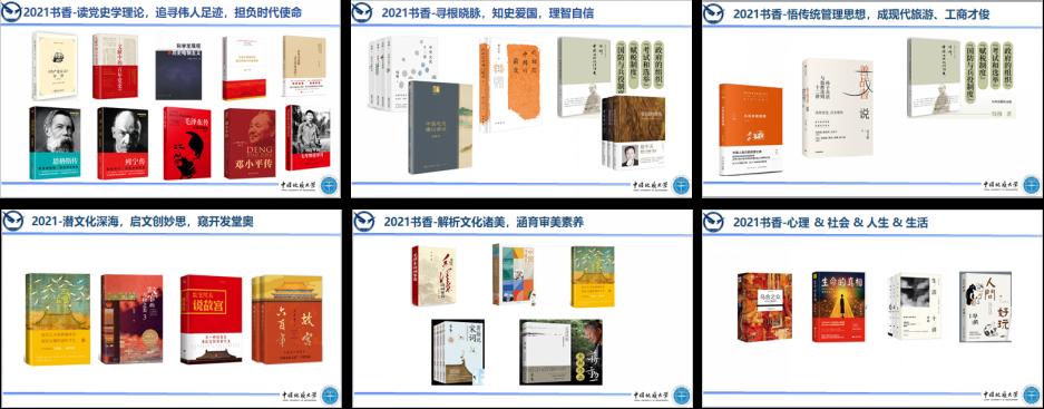 2021旅游管理“书香班级”大幅添购五大主题书籍,活动向班级书库赠入的图书既有党史及其理论学习读本,又有大众历史和传统文化读物;既有中西经典,又有古今论著;既有中国传统管理智慧,又有现代旅游文创妙思;既有深度理论名著,又有口碑生活读物。其中,为方便大家的党史学习和随时阅读,此次活动专门购入了党史及其理论相关书籍,如《<共产党宣言>导读》《文献中的百年党史》《习近平新时代中国特色社会主义思想基本问题》等,以及马克思、恩格斯、列宁、毛泽东、邓小平、习近平等马克主义者和无产阶段革命家、思想家、理论家的传记体读本。其中,特别选购了《青年马克思是怎么炼成的》《解读青年毛泽东》《习近平的七年知青岁月》等记录和研究伟人和领袖青春时期的人生经历及其思想的形成、转变历程的读物,旨在引领青年大学生在自身的学习和成长中,能结合当代社会发展形势和时代责任使命思考和选择好自已的人生。
