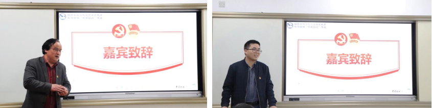 校图书馆馆长徐世球教授(左)、新捕京3522com党委副书记李少杰老师(右)为活动致辞