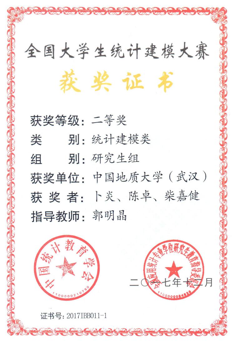 2017121-4日,第五届全国大学生统计建模大赛答辩赛在北京华尔顿爱华国际中心举行。由经管学院郭明晶老师指导的参赛团队(卜炎、陈卓、柴嘉健)提交的作品《基于网络搜索数据的中国流感预警模型研究》荣获统计建模类研究生组二等奖、总分第9名的好成绩。