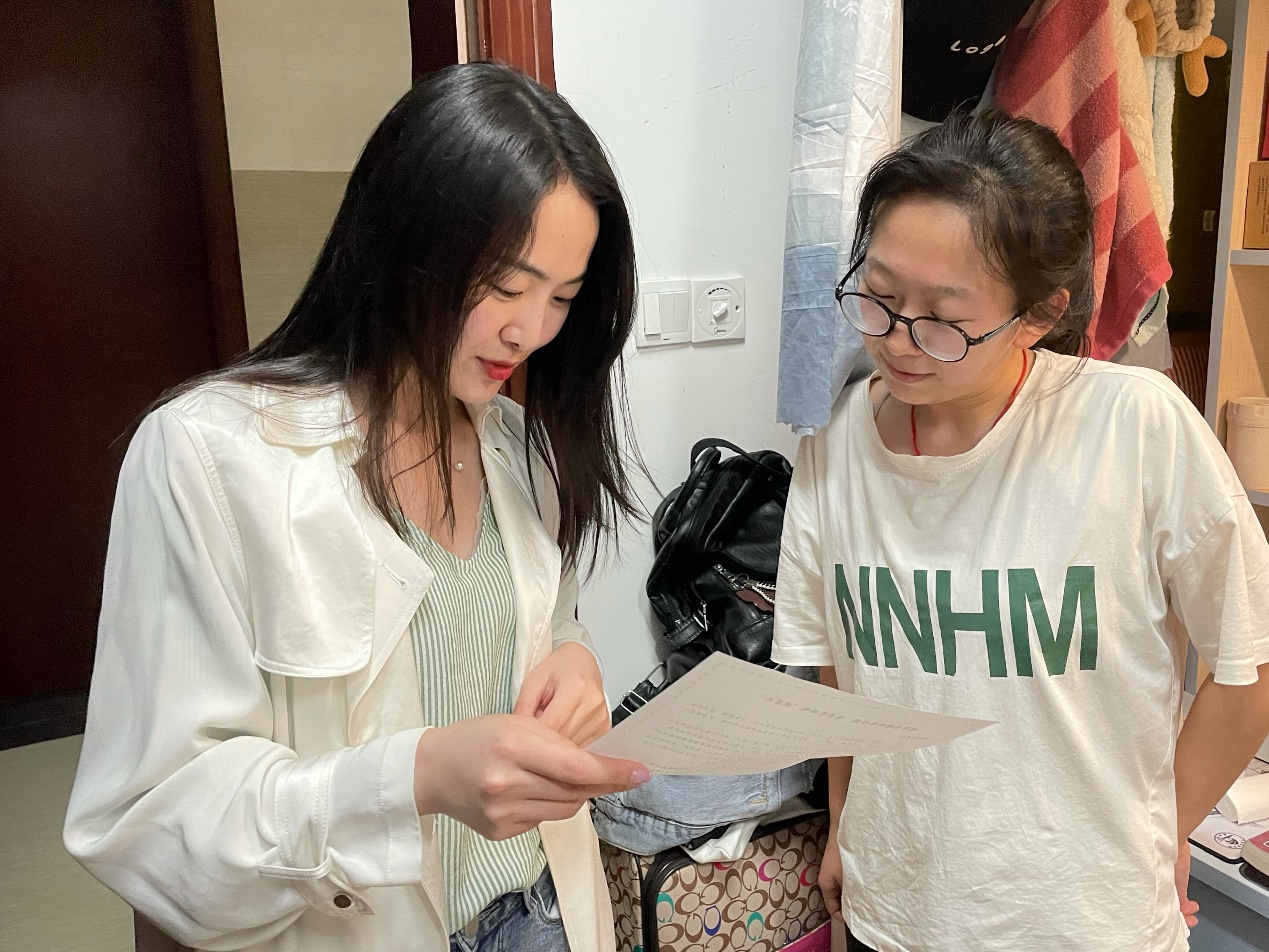 图1.辅导员深入南望山校区学生宿舍发放一封信
